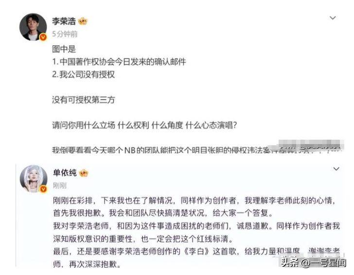 长篇大论质问对方,事故曝光之后,短时代内就登顶热搜,身为歌手,应当对版权的事故很敏锐的。